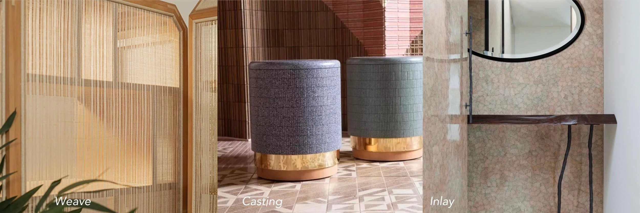 Weave, which incorporates plant fibers for intricate, textured finishes.