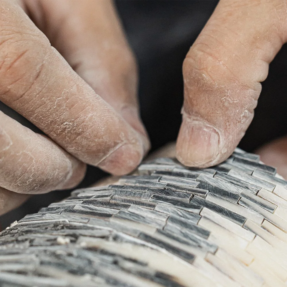 At Thomas Riley Artisans' Guild, our dedication to monumental quality and white glove service drives everything we do. We are excited to announce our partnership with Nature Squared, a company that shares our values, and is known for its remarkable ability to create luxurious, sustainable surfaces from natural materials such as eggshells, seeds, bark, feathers and more.
